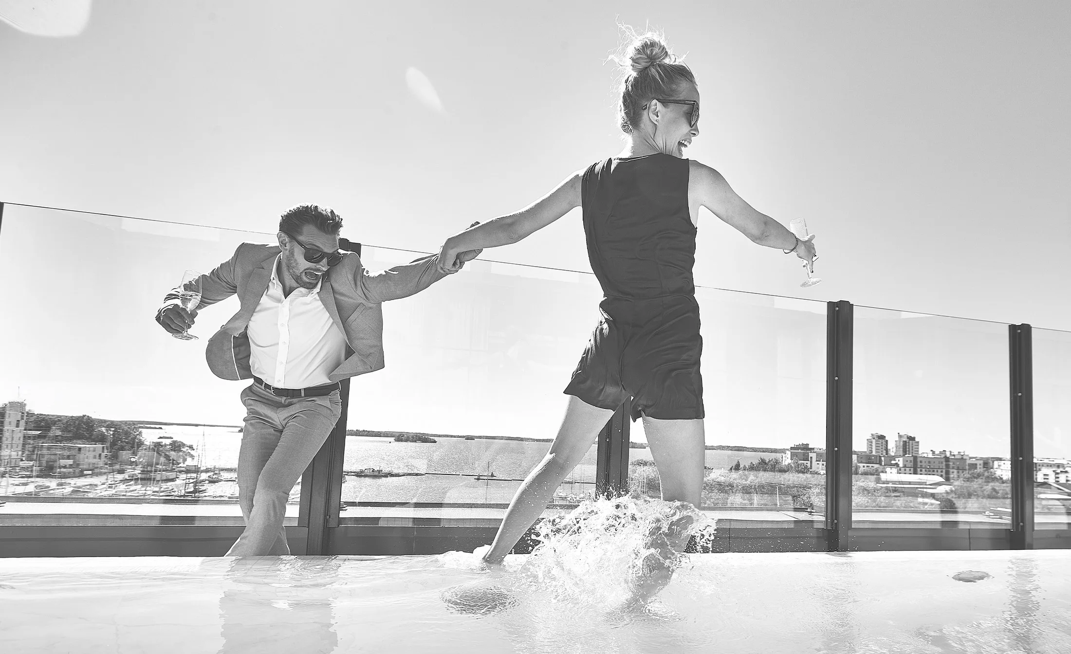 På våning 7 ligger vår Pool Club med varma pooler, eldrelax och Mälarutsikt. Hit kommer ni för kvällsbad, fördrink och mys i badrock.