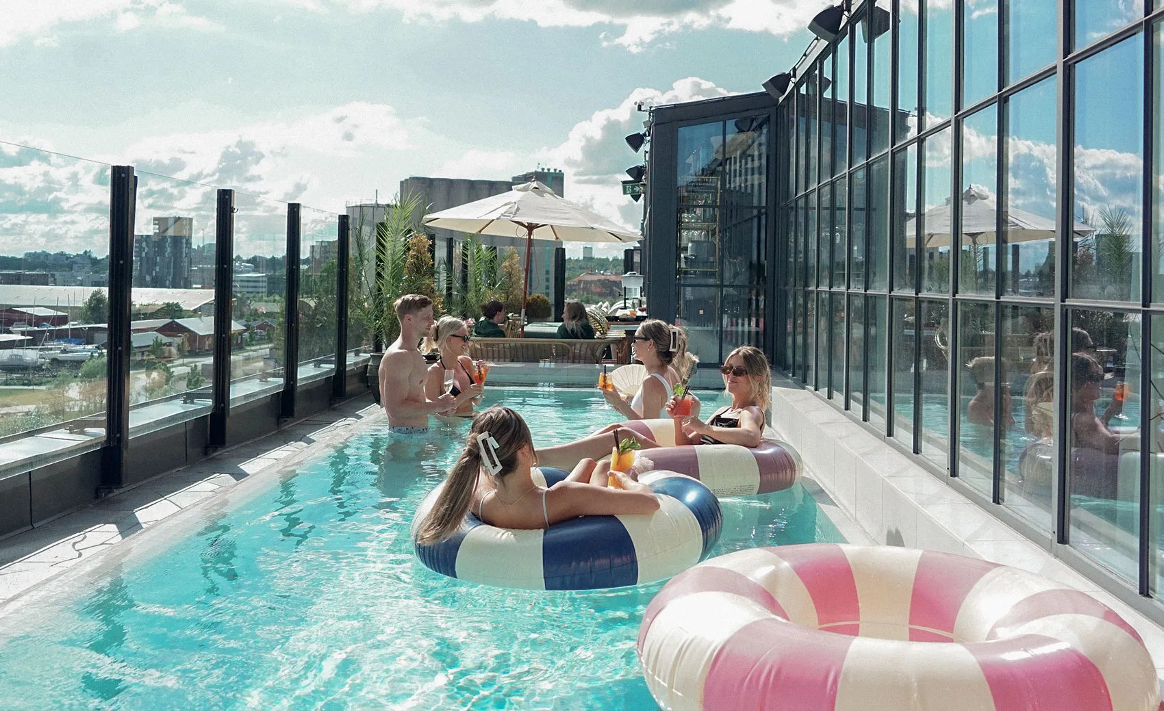 Voltage Lounge Pool Club höjer pulsen på våning sju – poolerna ångar och musiken följer stämningen. Du kliver ner i varmt vatten och upp i en helt annan värld..